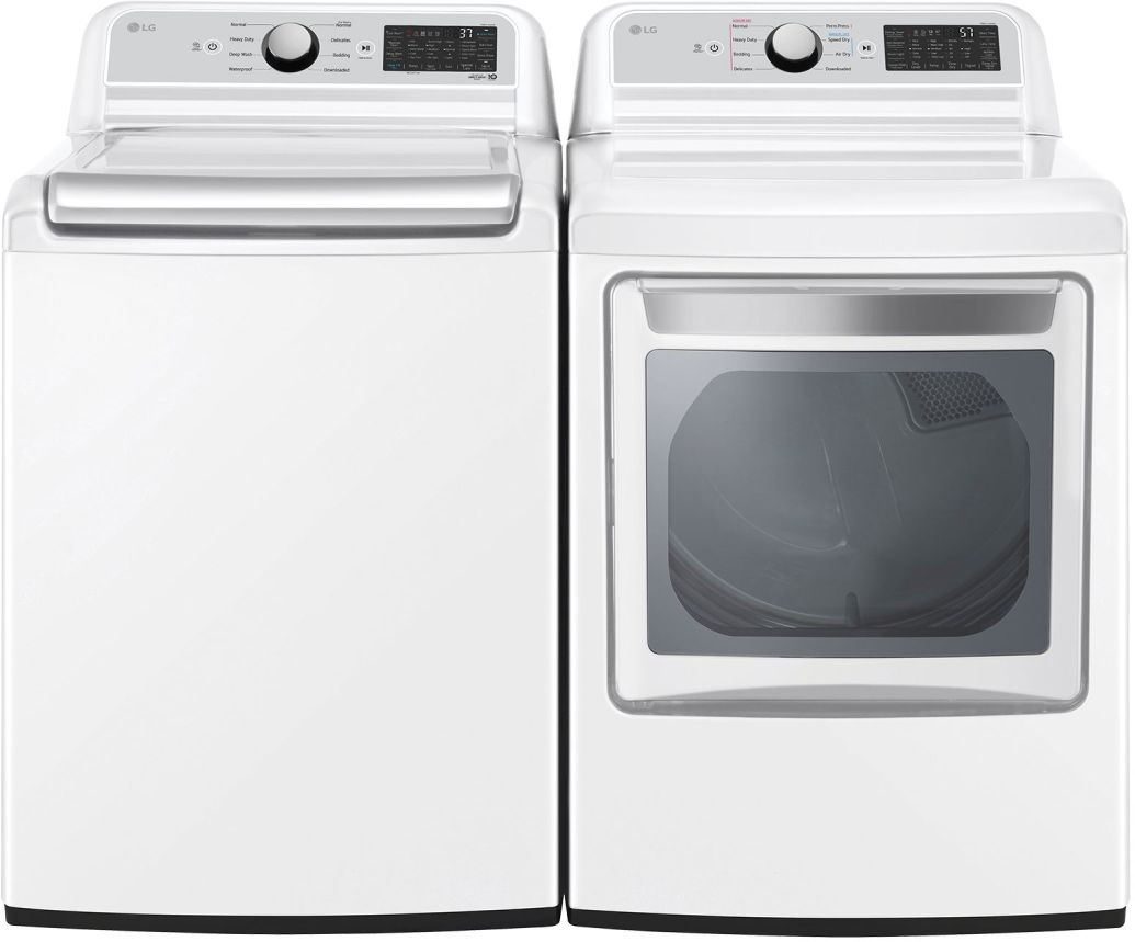 LG White Laundry Pair with 5.3 cu. ft. capacity top load washer and 7.3 cu. ft. front load electric dryerRead More